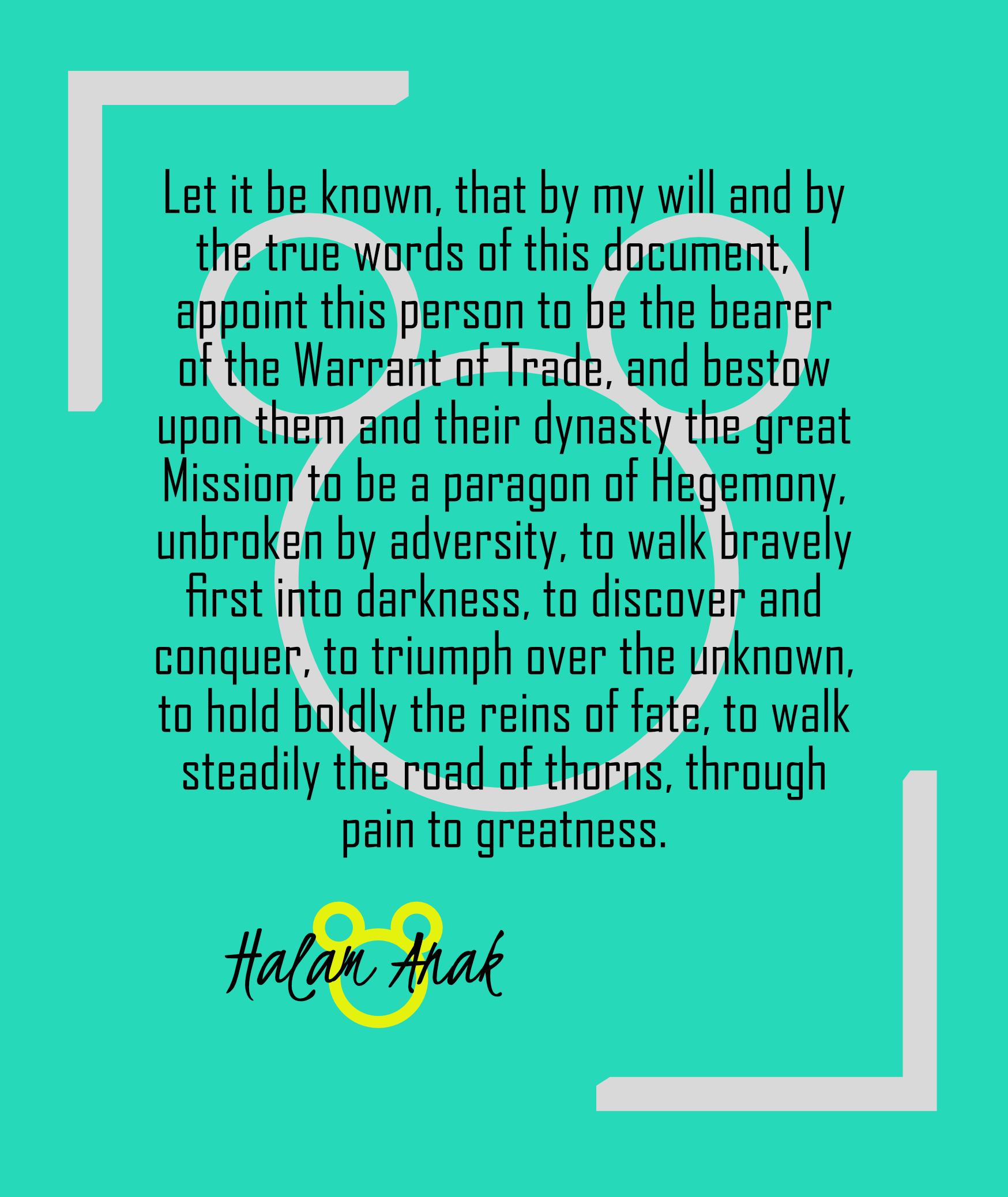 "...So Halam must step down from the position for now. But one day, he will return, just when the Hegemony needs him most."
