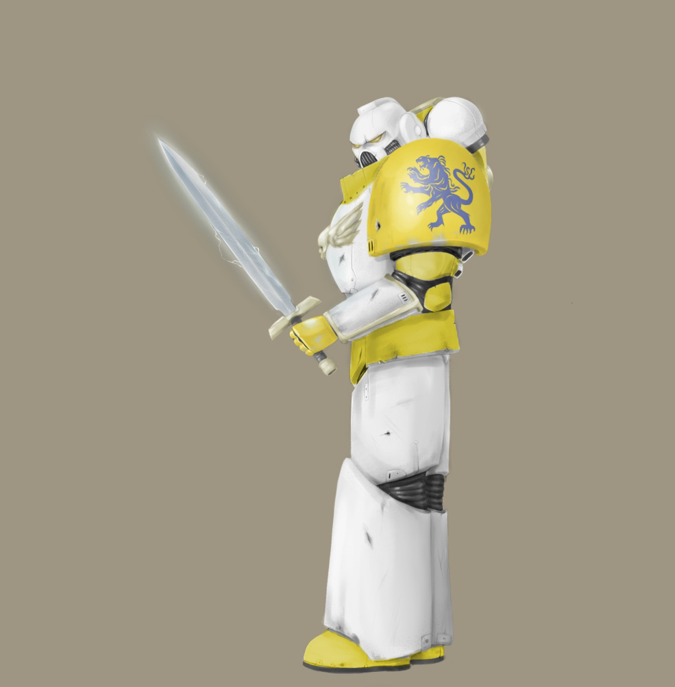 Boots trudged through blasted stone and the ash of a thousand men,They crunched and that sound carried over the carrion silence that preceded final moments.Brother Aalrik of the Second Legion still stood;Valorous.The alien hordes whose artillery had shelled his squads position for days were stunned into inaction seeing him emerge from the dust clouds.Indomitable.The Xenos had been entrenched for quite some time, he and his brothers were meant to infiltrate their den and assassinate their leader but they'd been detected; it didn't matter how now. His armour was rent open in a dozen places, he was an arm down and if he pulled the piece of re-bar from his chest he'd bleed out in moments. From the enemy lines came a regal looking creature, he... struggled to focus upon it but he saw how the others parted before it. Thinking was...hard, everything was slow...the world starting to spin.He tried to raise his remaining arm, sword in his grip but no strength to lift it.The blurry figure was coming closer.His auspex pinned in his helm; status?His knees gave out, he looked at them confused...why? He didn't want them to give out...he...he didn't want to go?He felt the cool touch of a power field flicker under his chin, the creatures weapon making the kneeling astartes look up.He couldn't see his enemy...so blurry, his eyes were failing him.But then....behind them...He saw a shadow, looming. Powerful.Golden eyes staring down on him, judging yet full of warmth, full of pride yet sorrow.He raised his hand towards the figure....his....his father.He felt warmth, but then in a moment the visage was gone.He saw his enemy, the outstretched hand became a grasp.He held the wrist of his enemy and spoke“Enemy commander located, commence bombardment on my position”He felt fire only a moment later.He thought of his distant father; Lieren.Im coming home father, im coming h-