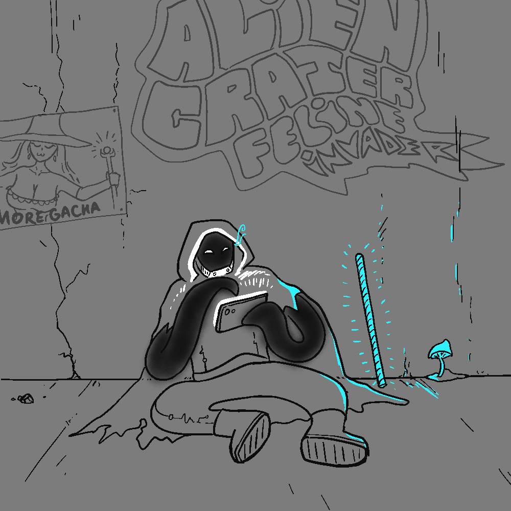 (You) Are Moldy McMoldface, and you're currently ego-searching. Seated in your empty concrete room in your evil lair – a long-abandoned Bastion floating fortress – you tap the mold tentacles on the phone. Thanks to Snail Guy – one of your minions, NEETing enthusiast, and filthy gacha game enjoyer, the base actually has enough electricity to charge phones. Where Snail Guy is stealing it from, you have no idea. You look through the internet, taking quiet satisfaction in what you see. Several days ago you and your other minion – Rayle, a centaur-ish girl with anger issues, took out the main magic orb that hosted ALL of the League of Myths servers, beating up a stray weaboo hero in the process. The reactions by humans on the internet are quite varied. The filthy casuals and shitters who play that terrible game (you would know, you were one of them) cry in anguish, as you wanted them to. The investors also cry in anguish at losing their money printer. The general masses, on the other hand, are mostly relieved at the staggering 0 casualties, an extreme rarity when a MONSTER is involved. Many more humans make memes and jokingly suggest the next targets for "that weird monster's" apparent gamer rage. Pfft. Like you care about their opinion. You totally don't. So far, working for IO has been less scary or exciting than you expected. For the last several days all you did was steal magic-conductive marble to make your base a floating fortress once again. IO hasn't been telling you where exactly you would be flying, but you assumed it has something to do with the location of MONSTER KING'S prison. Even with the City under martial law by now, stealing the marble in bulk wasn't that hard. What would be hard is the next part. The alarm on your phone sounds, you stow the device inside your SHELL – a high-tech stealth suit, currently holding the mold cloud that is your actual body, and walk to the war room to speak with the team, including the newest addition. Or oldest, depending on how you look at it. Before recruiting you, Rayle and Snail Guy, IO had already had a helper, a scaredy, nervous, and kind of annoying monster girl that went by Psy. Psy has unreliable but potent psychic powers, including mind control/reading, and can therefore extract useful information out of prisoners. Something that you would need to do soon. To operate, besides the marble lining, your Bastion needs a magic orb of great power and somebody to operate the system. You and IO have planned to steal both the orb and the necessary skillset tonight.You walk into the war room and see Psy on her phone, cheeks red, muttering "ehehe.." in a creepy way. After she moved in, you quickly learned that Psy is a massive pervert who spends most of her free time consuming yaoi "art" and "literature" in truly monstrous quantities. You jolt her out of her bliss.