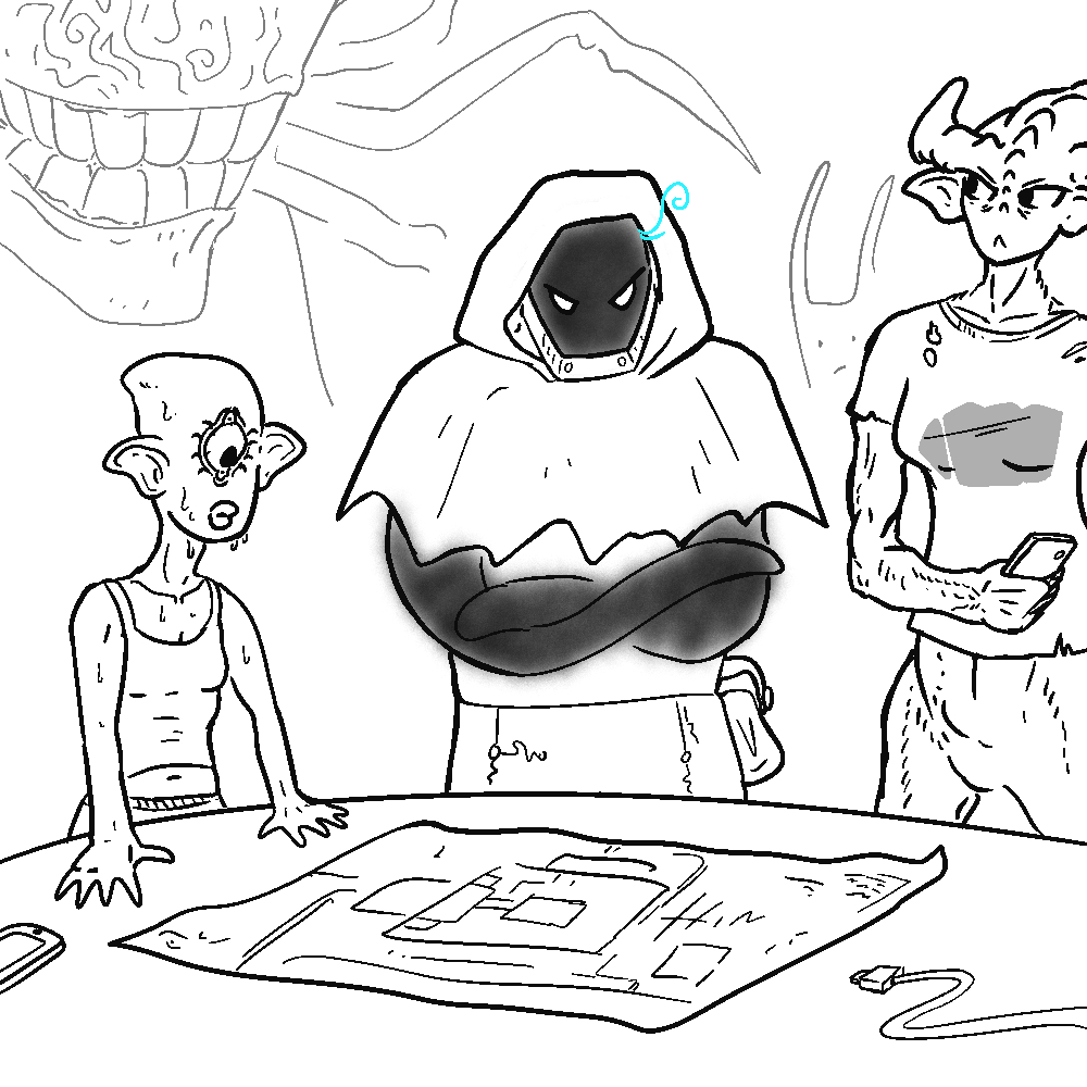 – "Psy! Has IO given us the plan yet?"The girl monster squeals and nearly drops the phone out of her sweaty palms. Her fat, flabby ears twitch in annoyance.– "Uh.. yeah. Yeah, he actually did. I think boss left already. Uh, what time is it? Oh shit!" She fumbles around with a paper map laid out on the table.– "DO NOT WORRY. YOU'RE RIGHT ON TIME."A deep and oddly casual voice of IO comes from the side, making both of you jump. Psy drops her phone this time. The giant monster's ability to be unseen and unheard seems to not come from any power but from a skill honed for who knows how long. You're still having trouble getting used to it.Snail guy and Rayle come into the war room next, both taking nervous glances at IO. Rayle, your self-proclaimed rival, gives you a nod. IO stretches his spiked limbs and gestures on the map. – "SO. THIS IS A MAP OF THE RITUAL SITE IN WHICH HUMANS TAKE MAGIC ORBS FULL OF RAW POWER AND ATTUNE THEM TO COMPLEX SYSTEMS: THE BIGGEST OF MECHS, WIDE NETWORKS, OTHER HUMAN-MADE TOYS. WE NEED ONE TO POWER THIS.." He taps his spike on the concrete wall. "..OLD WARHORSE AND GET IT TO FLY, CLOAK, TELEPORT, EVERYTHING."– "THE HUMAN WITH THE RIGHT SKILLS TO DO IT WILL BE INSIDE TOO, INSTALLING THE ORB INTO SOME GIANT ROBOT. THIS IS WHY PSY WILL BE COMING WITH YOU. SHE WILL TAKE THE KNOWLEDGE WE NEED."IO places one of his spikes on Psy's shoulder, making her shake with terror.– "NOW, MOLDY, THIS ONE IS GOING TO BE YOUR CALL. DO YOU WANT ME TO HELP IN A FRONTAL ASSAULT? OR WOULD YOU RATHER HAVE ME CAUSE A DISTRACTION TO HELP YOU WITH INFILTRATION? HUMANS ARE READY FOR WAR NOW, WHOLE CITY SCARED AND TWITCHY. EVEN FOR ME, PURE STEALTH WOULD BE TOO TOUGH OF A SELL TO RISK IT."IO flashes you a grin. Despite having much more experience, it seems to amuse him, leaving the strategy to you. HOW DO YOU HEIST?>LOUD. Bust down the front door with IO. Massive human respose will be despatched, but with IO's help you should be able to quickly bulldose your way through. >QUIET. IO will go on a very enthusiastic walk several blocks away. Probably eat a bunch of people. All avaluable local forces will be pulled to fight him, leaving you to do the infiltration. If caught you will be on your own.>SUPER QUIET. Actually, you don't need IO's help. He can haul some magic marble, you still need much more of that. This will leave you with a tough infiltration to pull off. You could probably do it without much casualties, if you give a damn about such things. (IO will probably still eat someone, you know him)>(Write-in?)
