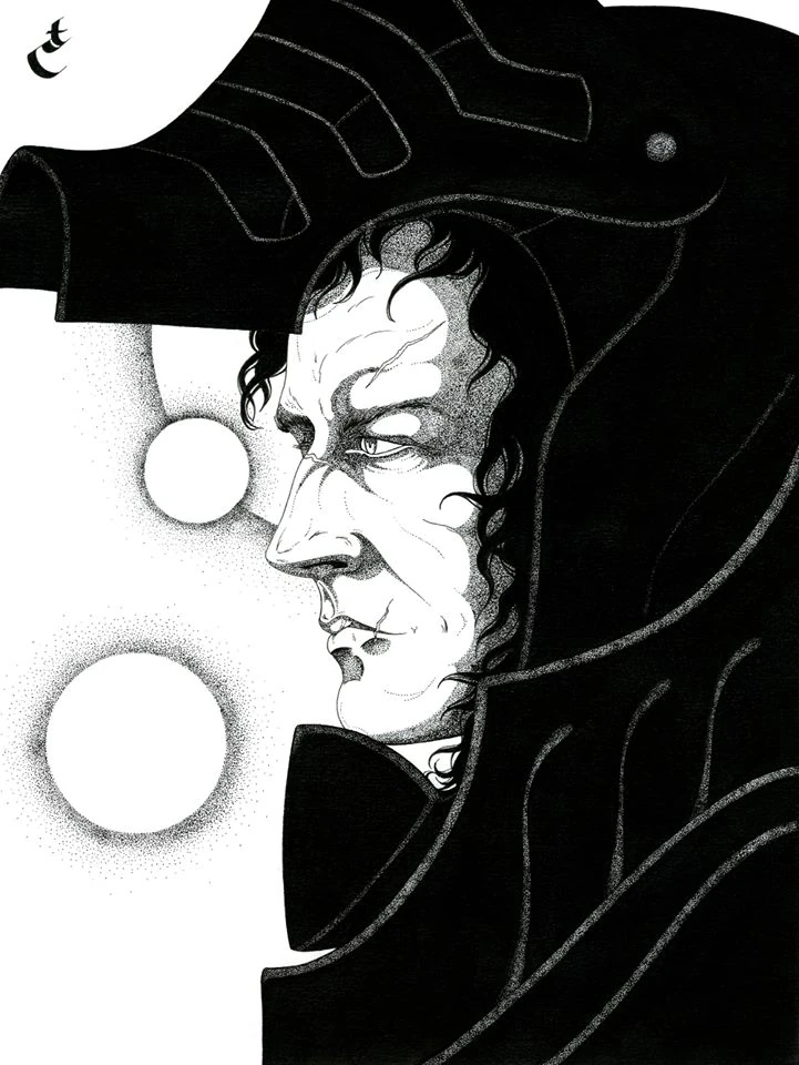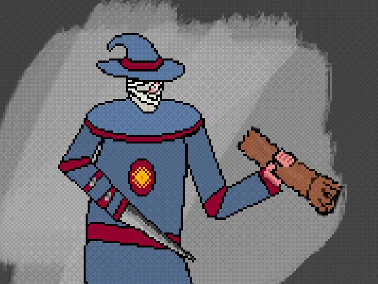 >A patch of shadow flows into the corner and pools like an oil slick. If you stare for long enough, you can see the faint, sketched impression of a wizard: a robe, a tome, a wand, and a pair of glimmering spectacles.CASTING FOCI>Wand <Shardcandle> [Runespace: 8, +1 DC, +2 DMG]>Gazelle [6 HP, 5 MOV, 6 DC. You may move unimpeded through enemy occupied spaces]SPELL 1:>Hierosmite [Runespace: 1, DMG: 2; Deal damage equal to this spell’s DMG to an enemy.]>Crescendo: [Runespace: 2, +3 DMG. Can only be taken once per spell. Incompatible with Forte.]>Imbue [Runspace: 1. FIRE]>Lance [Runespace: 2, 2d4+1, Range: 5, PIERCE]>Longshot [Runespace: 1, +2 Range, +1 ACC, Cannot be taken on Melee-Form spells]>Longshot [Runespace: 1, +2 Range, +1 ACC, Cannot be taken on Melee-Form spells]
