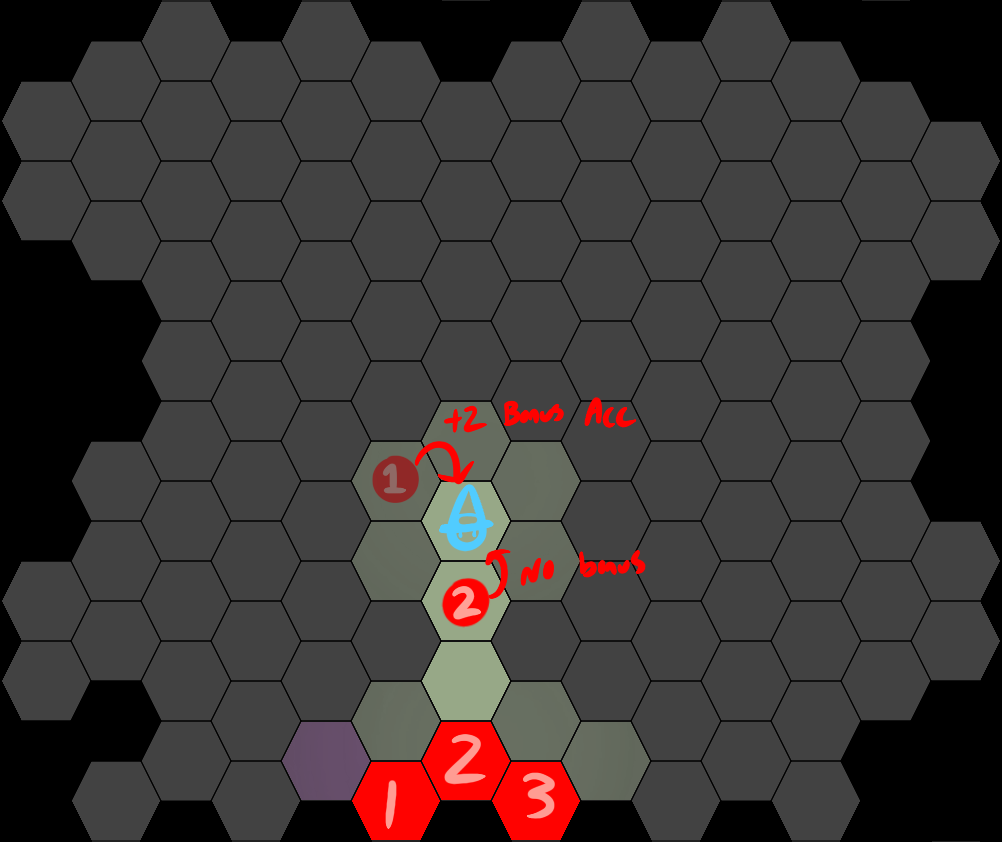 >>6397161Even though players can see adjacent spaces even without magelights, those spaces are still considered DARK. All enemies gain a bonus to their accuracy against you so long as they stay on unilluminated tiles. For most monsters, this will be +2, but some have special ambush abilities to make that bonus higher.In any case, monsters do not have this bonus so long as the space they stand on is illuminated, as illustrated by the example scenario below:
