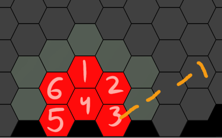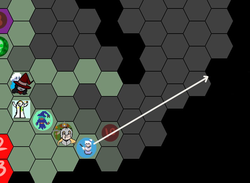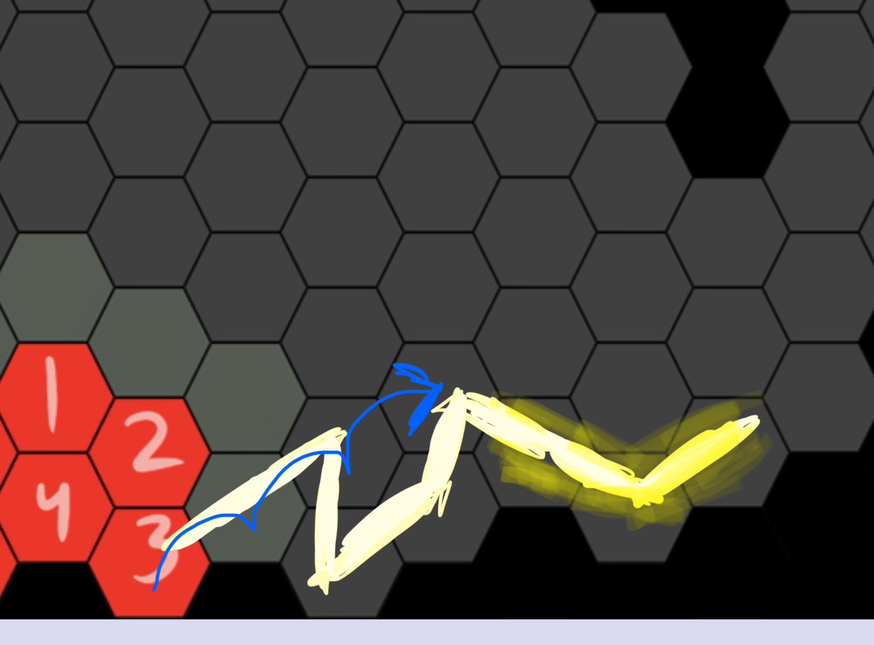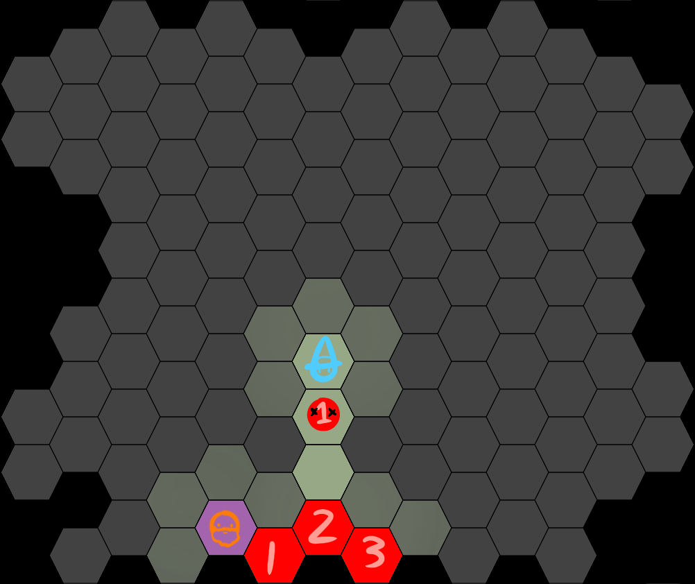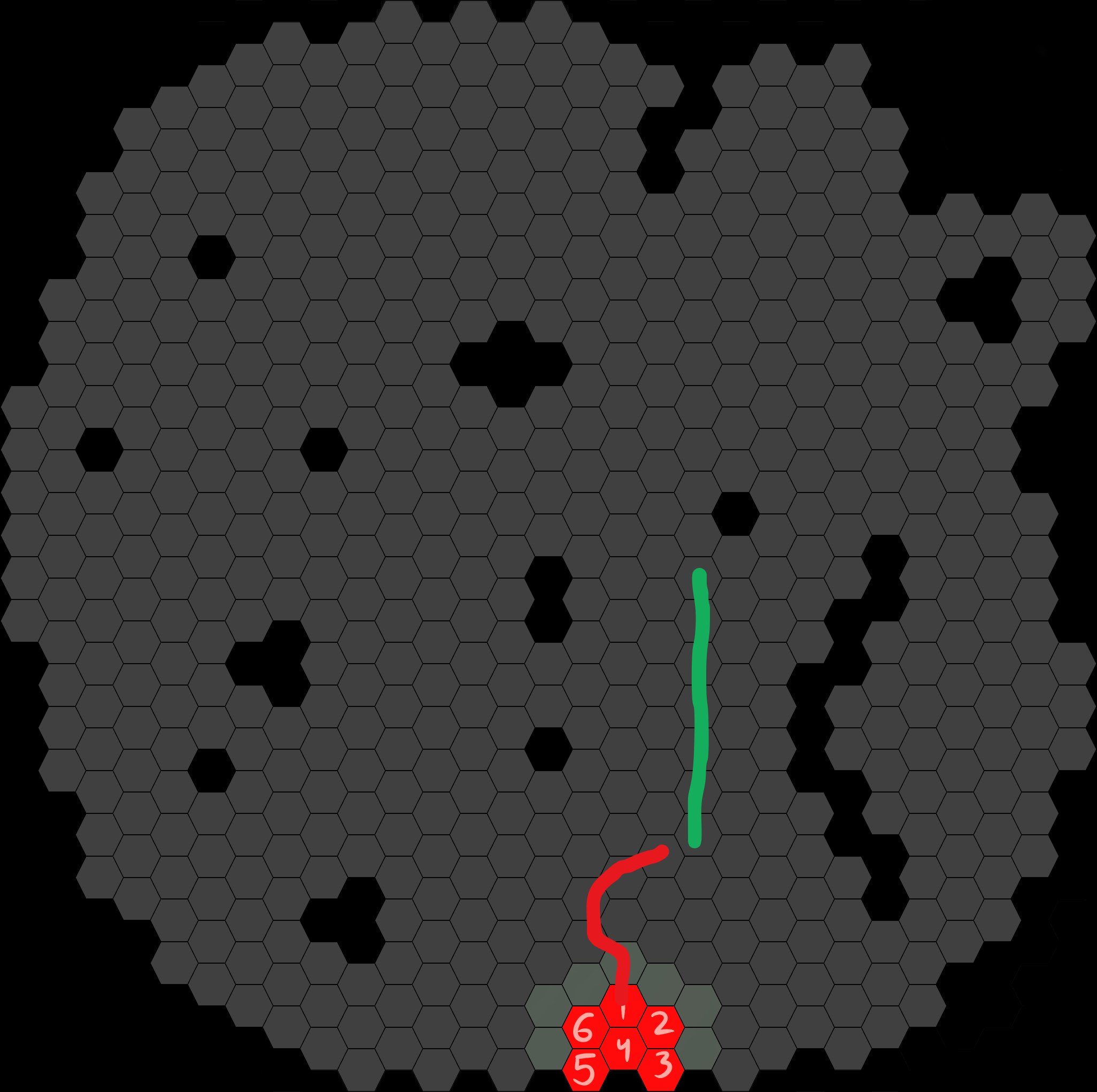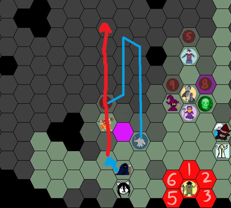 I hope this is clear enough >>6397254Cookie starts on hexagon 5.The green line shows where she moves.The red line is #Sacred Fire#. She wants to light the path ahead.