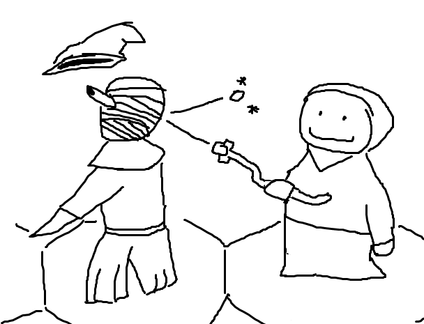 Applying as Triage, a simple man who'd like to keep the group from bottling. He wears his robe, carries his wand, and tries to keep the group delving long. >Wand <Shardcandle> [Runespace: 8, +1 DC, +2 DMG>Vampire [7 HP, 4 MOV, 7 DC.]Sigil 1: Personal Defense Weapon [PDW] (Rune 1, 3d5, Range 3, Damage 4)-Arrow-HierosmiteSigil 2: Binding Chains (Rune 7, 1d6+2, R4, Chain 2, 7 Restore)-Chain-Restore-CrescendoElemental Vote: Words as written. The fire rune increases the damage of the spell, and since healing is a damage effect, it thus increases healing. Frost on the other hand slows you down. If you later on gain an effect that benefits from being slow, or gain armor from rime, or something, then it might be usefule to ice yourself. Guild Name: Dawnseekers is a good name