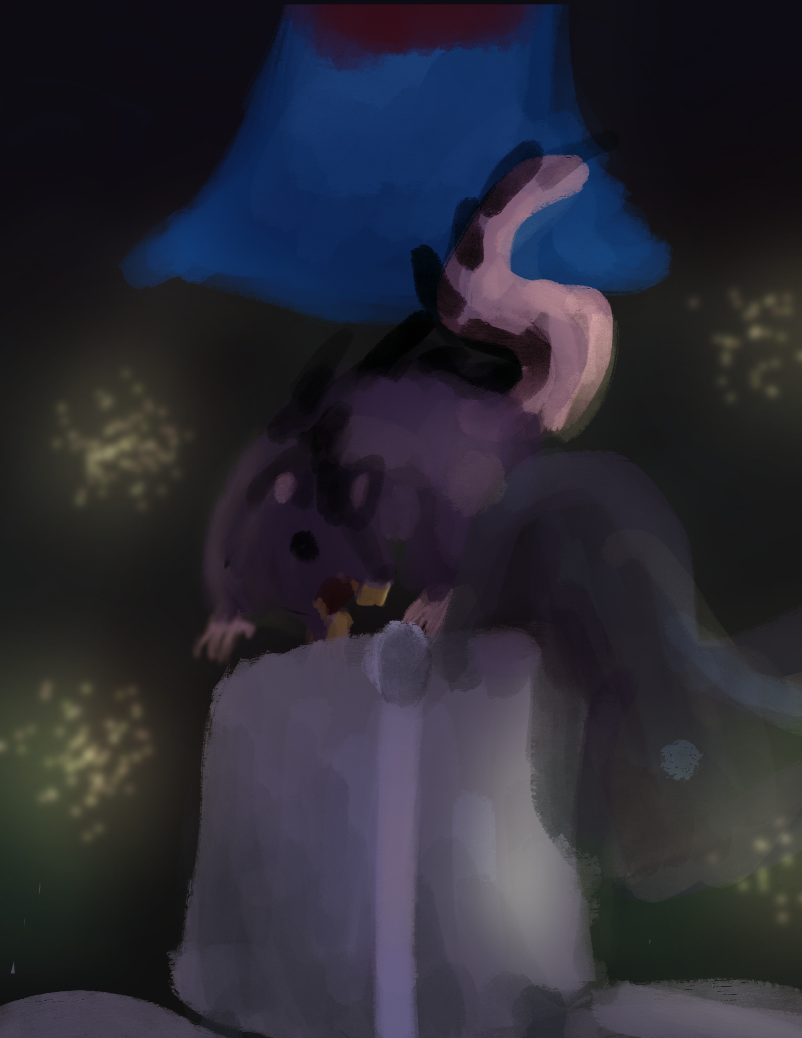 >>6397705Sounds of scuttling and squeaking echo through the high stone walls of the cavern, the impenetrable darkness keeping you all from knowing what lies beyond the reach of your magelights. In addition to the one caught in the center of the forward march, FOUR new stalagmice emerge from the shadows, each juvenile, but with claws and spines and teeth sharp enough to tear a defenseless human to shreds. One skitters up to Alaryck, the one intruded furthest into their territory. Another, perhaps frightened by the sheer scale of her grand flame magic, lunges for CONQUEST. On the western flank, a rodent, hunger in its beady black eyes, finds LANSA as the closest, and thus best, target for its insatiable appetite. Finally, on the right, a clever little stalagmouse finds Cynthia to be the most isolated of the targets it can see, hoping to single her out before her friends can mount an attack. >Dice will be assigned to enemies in numerical order. A juvenile stalagmouse’s roll to hit is (1d5+3) (plus an additional +2 in the dark).>In order, that's LANSA, ALARYCK, CONQUEST, THORNE, and JOROGUMO.
