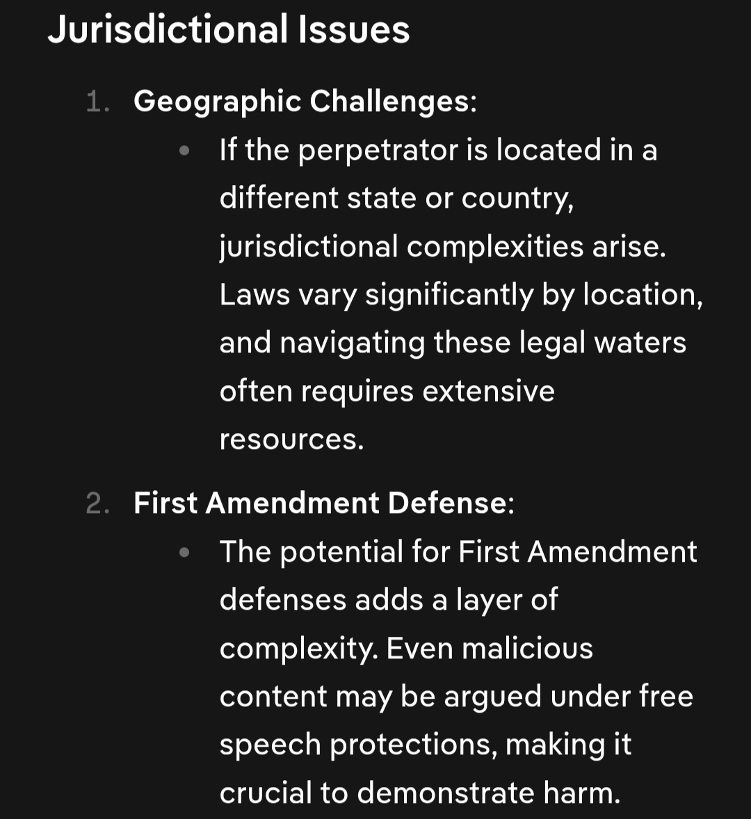 >Additionally, suing anonymous perpetrators remains a significant challenge, particularly in a digital landscape that often prioritizes privacy.