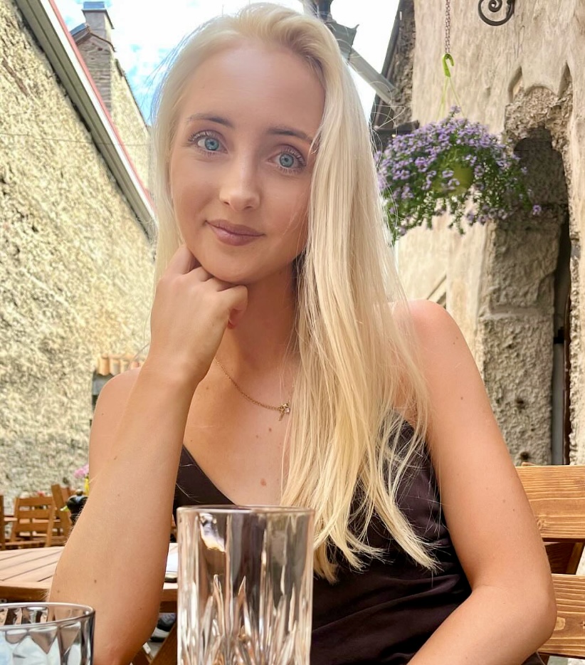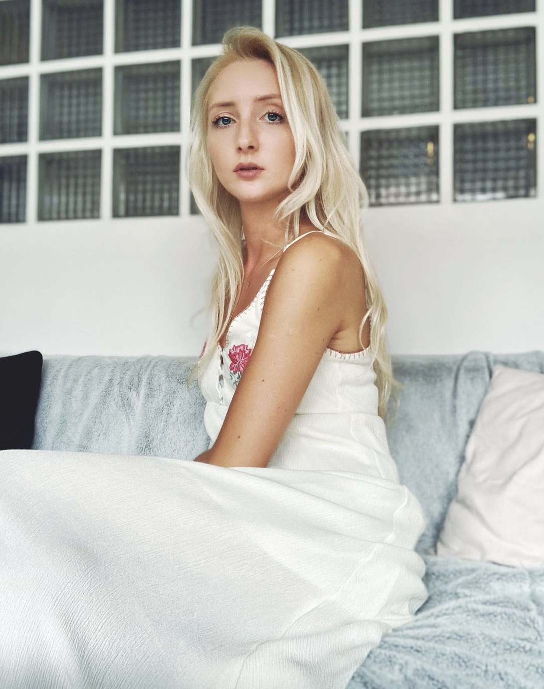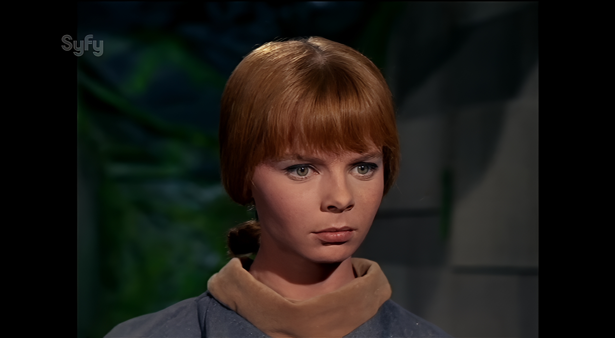 upscale would be greatly appreciated! if it's not too much trouble would it be possible to only have the girl in the middle stay in the photo please? and possibly for her to have a neutral facial expression?
