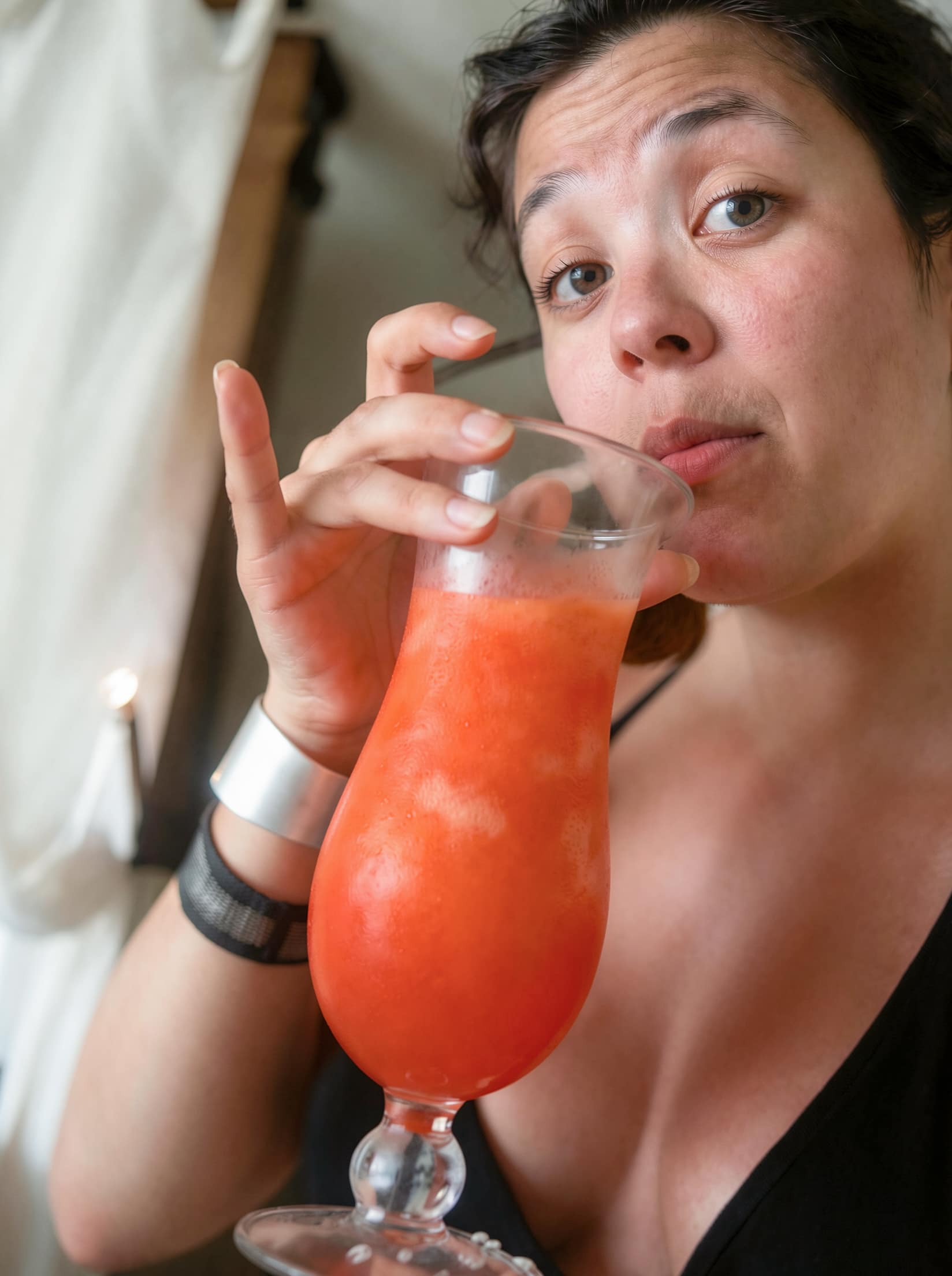 >>20396991This photo is already 35 years old. An analog shot, of course. A slightly brownish soft focus was intentionally used. The centrally mounted, swiveling flash was aimed at the wooden ceiling. As proud as I was of this picture back then, I'd like to see it again clearly. Is there still enough information available? Would you be so kind as to take a closer look? Thank you very much for your reply.