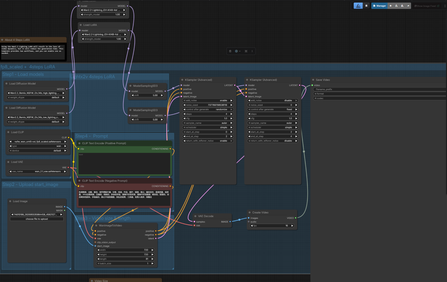 >>20419229that one is right because the start and end steps match the total step number. the one with 8 steps was wrong. think of steps as one setting btw just always put the same number in both boxes, it's start at step and end at step that split the number of steps up for each passso for simplicity on 8 steps split evenly the left box would be 0 and 4, the right box would 4 and 8.also learn to use start frame to end frame eventually as it can pull things off no lora can do since you force the AI to go to a pre-prepared image. that will need an image editor, namely Qwen with a NSFW model.I'd leave that for now though, as it's kind of information overload.