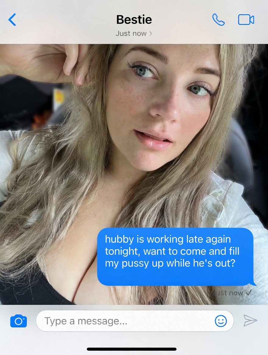 >>20417627So fucking hot. She has sent messages just like this a few but we usually met in cars if he is ever home.