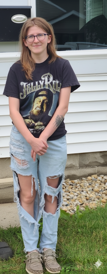 I want to see her have a large penis hanging down from out of her pants, in a realistic manner. ideally a strip video where she unveils her soft penis then gets hard (hands off)