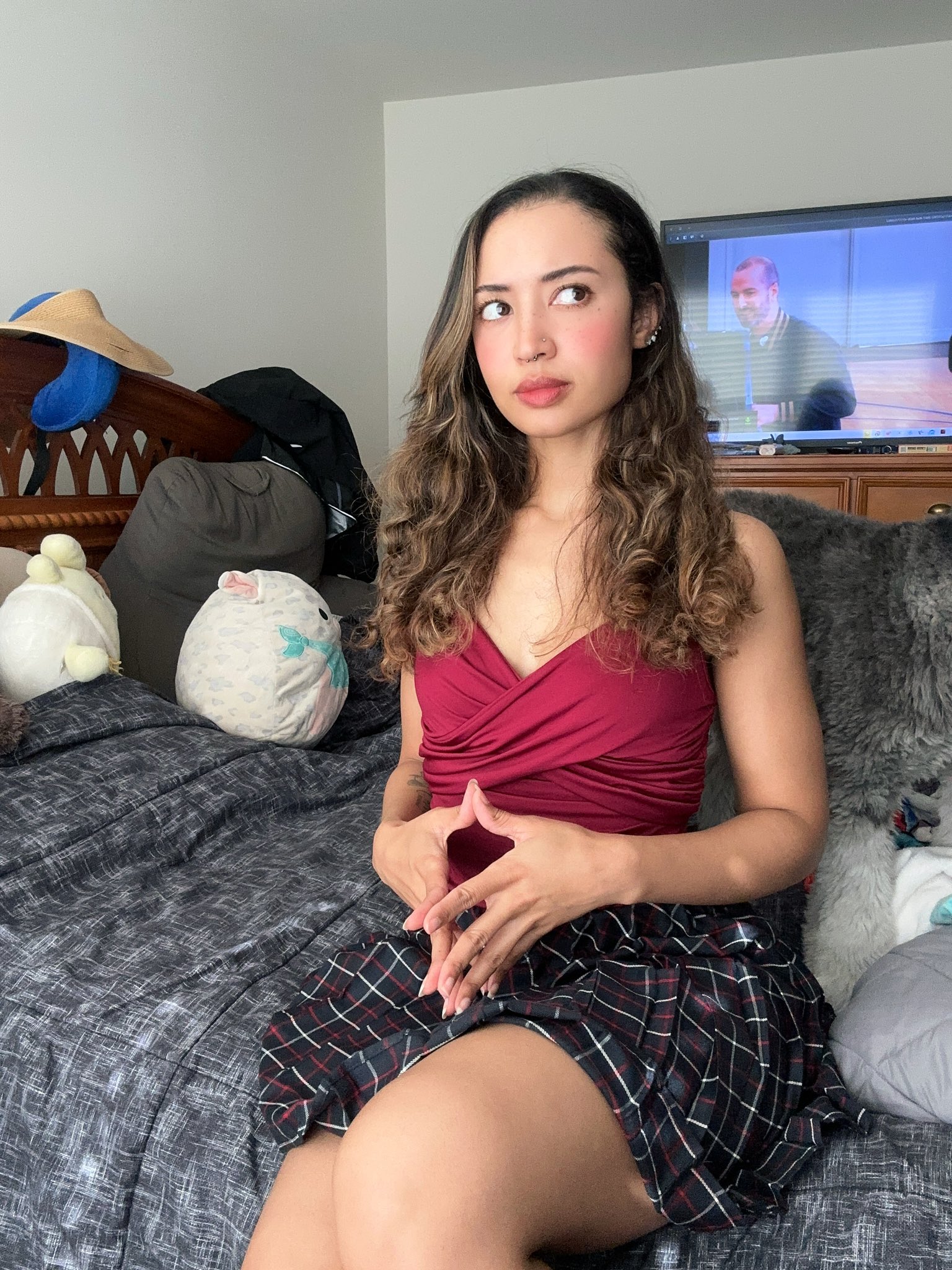 Would love to see her in some red see thru lingerie if you can please wiz