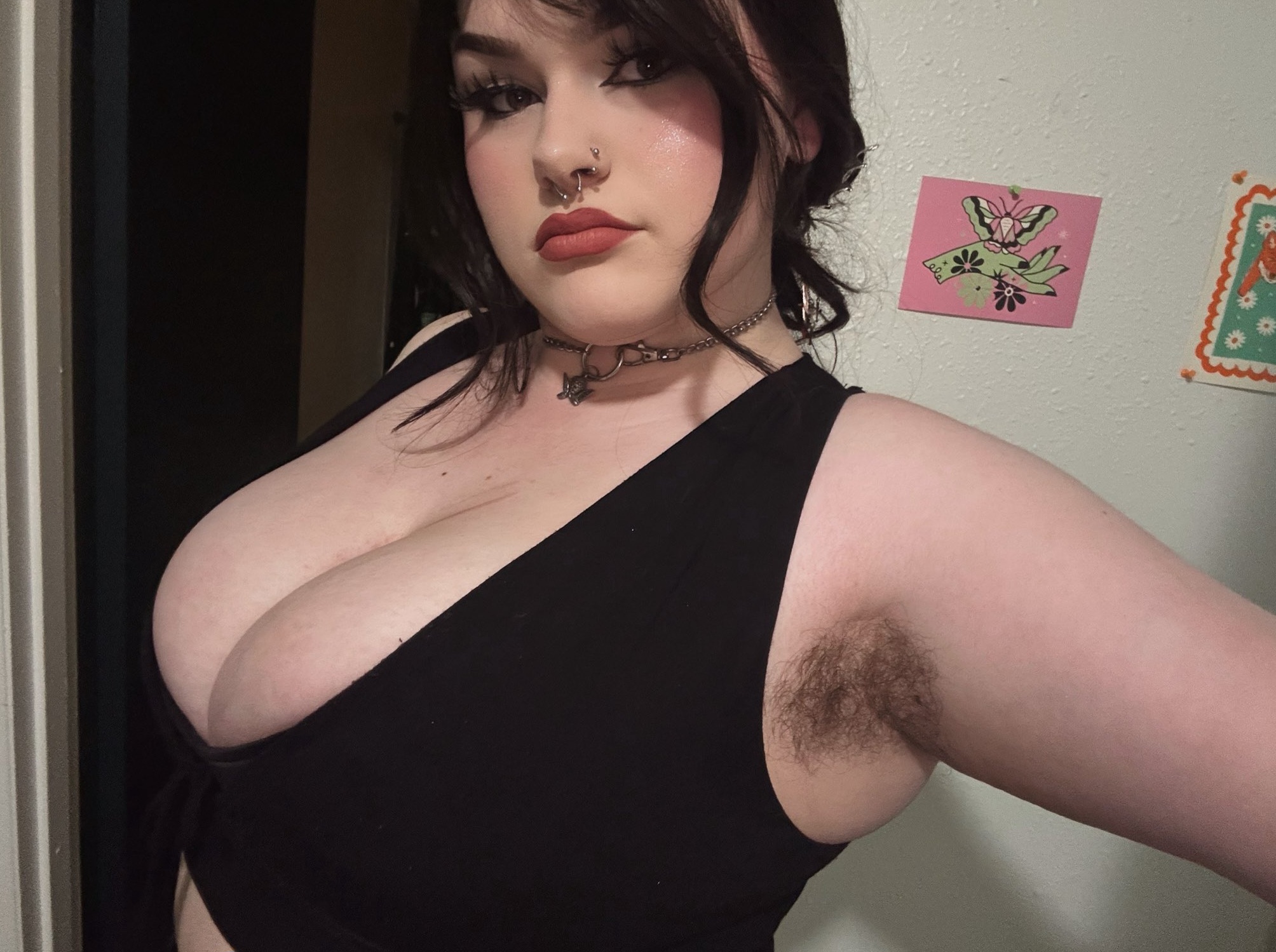 Top pulled down. Tits out.