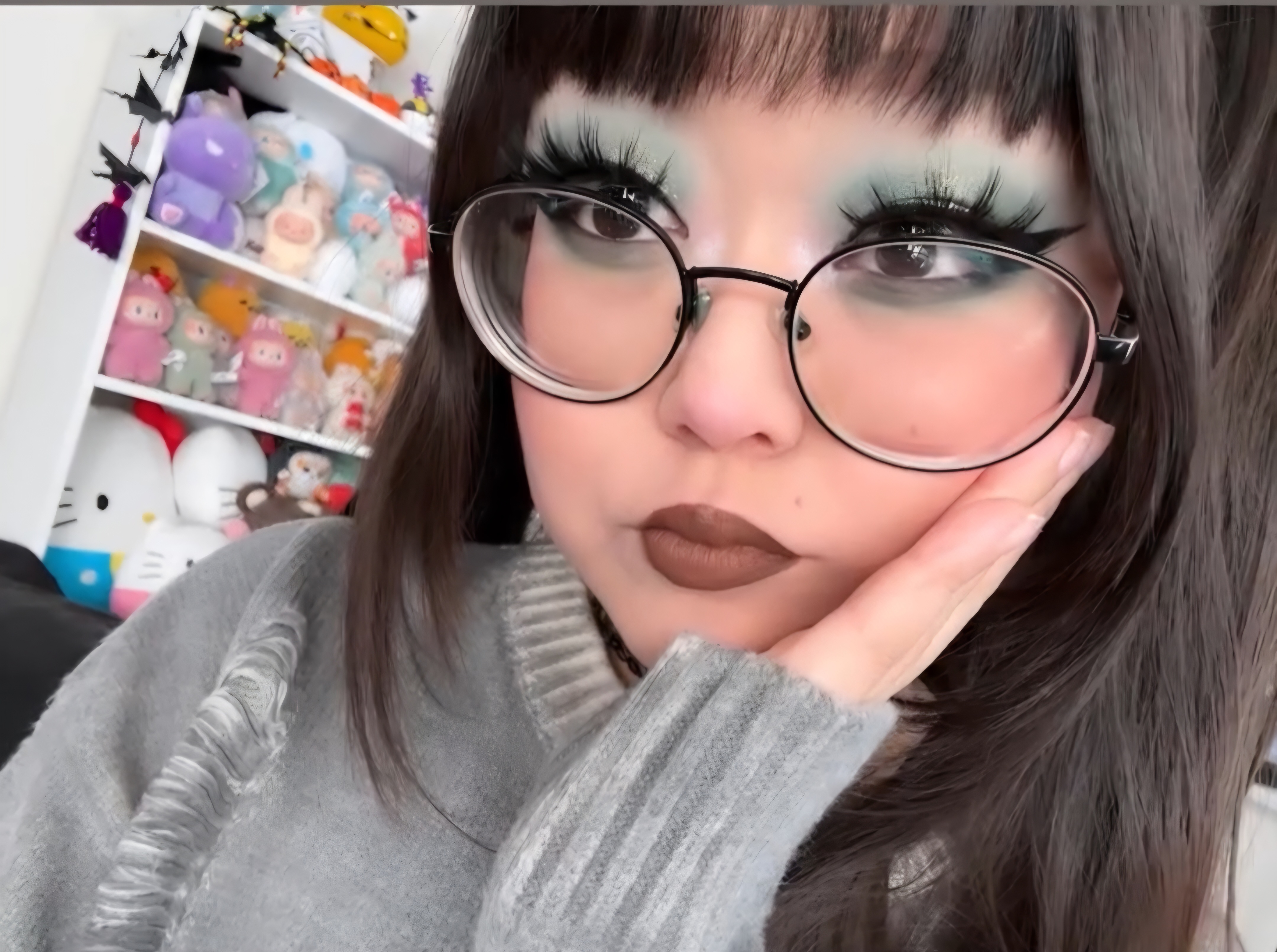 >fingers herself.