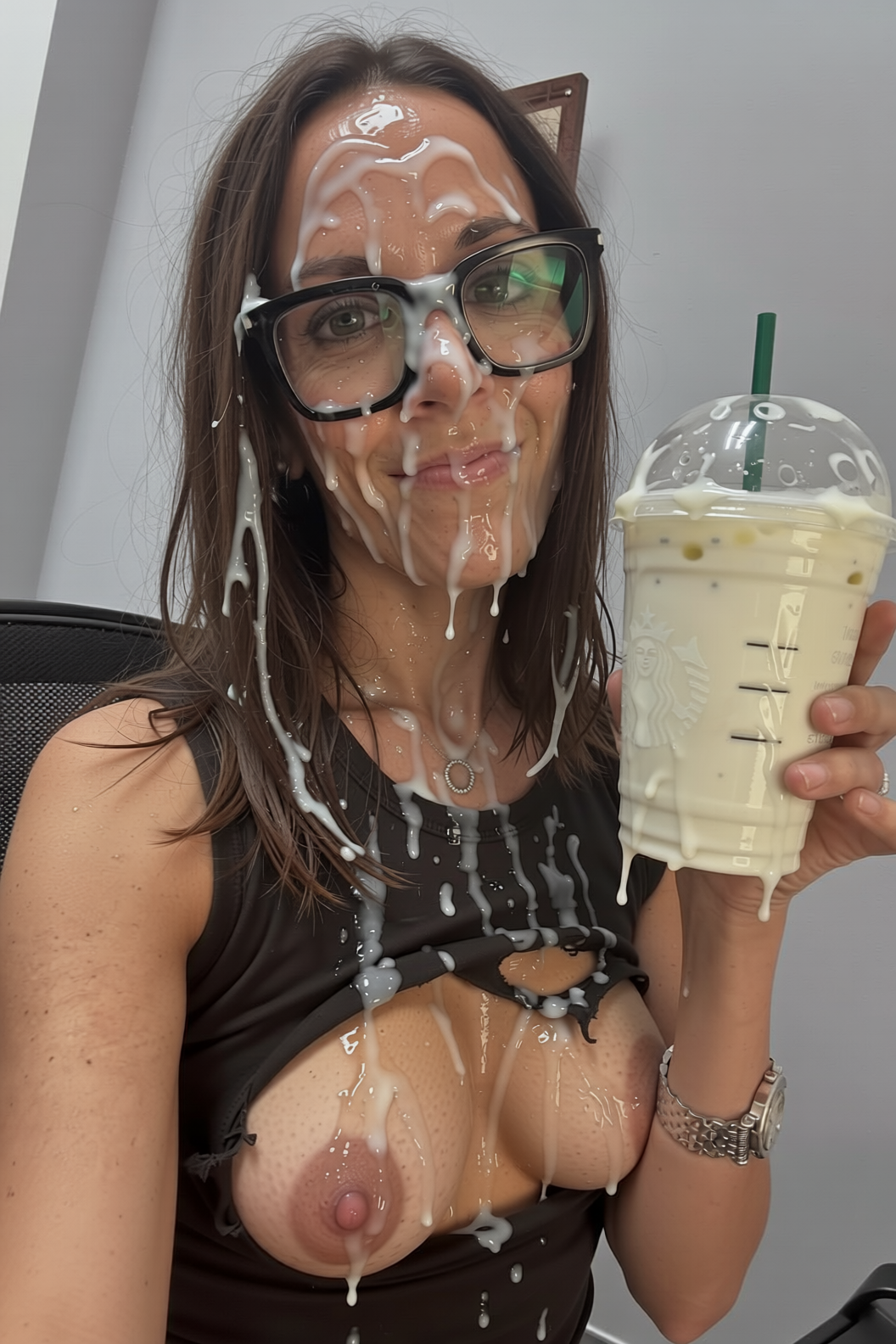 I would love to see this pic edited with some cum on her face. Anything is appreciated though