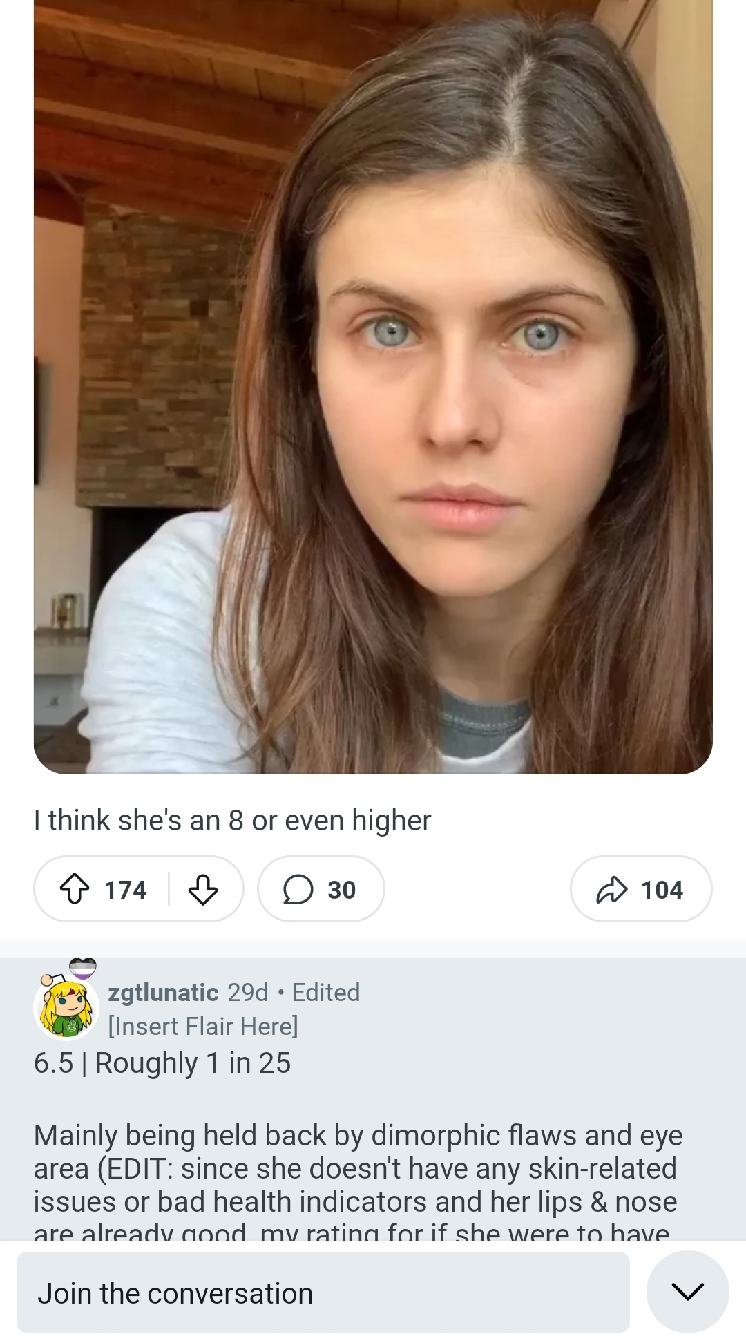 >>83169401>>83170321THIS, she loses two points instantly without the blue eyes