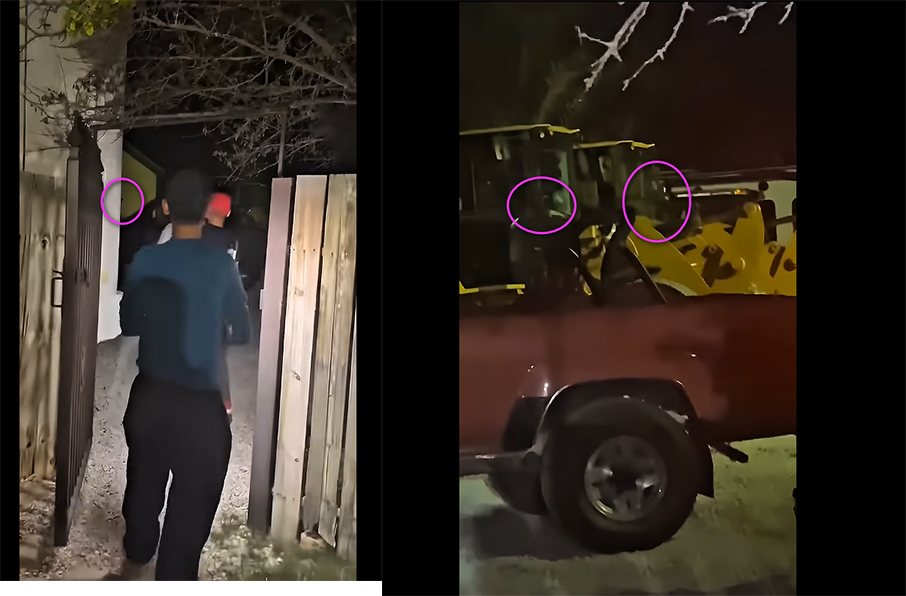 Put it on 0.5 playback speed and look here towards the end of the video.That shit pops in from the left of the frame and scares them back out of the yard.The big guy is cloaked behind the gate to the right of them and makes the mom scream, she can sense it, you can tell by how she keeps panning the camera over there for no reason.