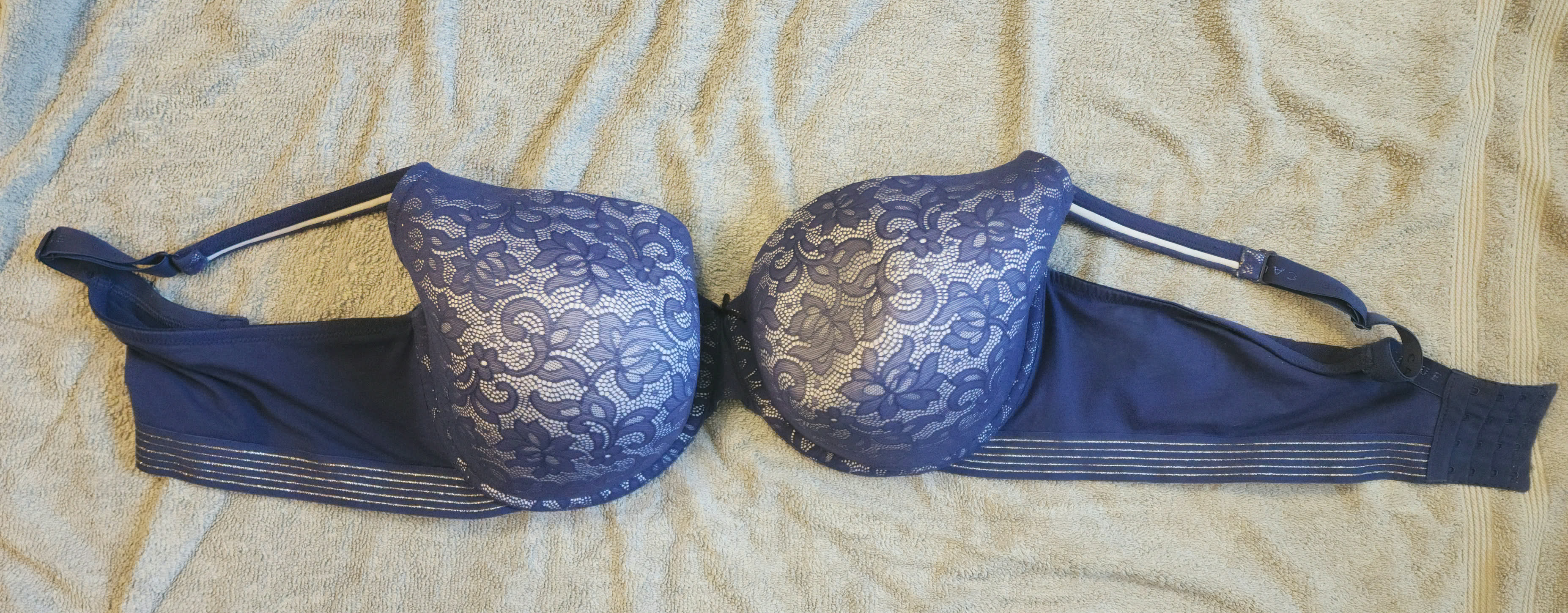 >>82662304If this thread is still up tomorrow I'll see if I can find some of hers. She sometimes leaves bras hanging on the door to our laundry room so maybe I'll find something there too.