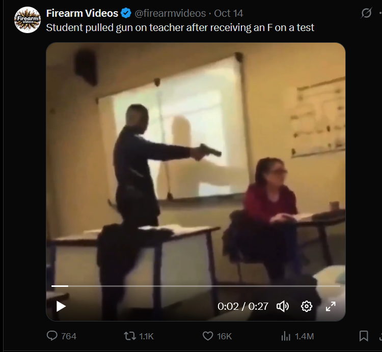 >>82809077Trade off you don't teach here but everyday there's a one in 5 chance Timmy comes to the school and starts blasting Which do you prefer? Cherry picking tard