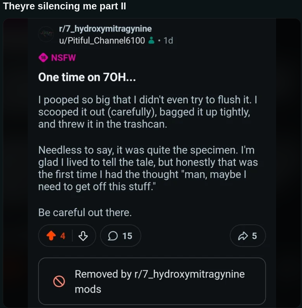 >82844362NTA.>Probably most the posters here either died or just moved onYeah, but there's always new-blood. I am one, started posting on /drugfeel/ 3 months ago. And I see a lot of oldfags complaining that the thread is full of way too many young people these days. The thread is really slow to nonexistant during the week, but comes to life on weekends and is still fast enough not to get bored of during that time imo.>I fucking love 7oh that shit is ballerThey banned both 7OH and mitragynine (the one that metabolites into more 7OH) seperately a few years before 2019, way before I was aware of their existance. So I never got the chance of doing legal 7OH. And I can't find it anywhere on the blackmarket. There is no demand for it here (but it's nearly impossible to find actual Opiates on the blackmarket anyway and there's definitley a demand for *that*, so idk what's going on in dealers' heads). Only tried 100mg of Tremadol and have seen the potential. I want to experiment with Opiates more but have no place to source it from. How do Heroin users score their shit in this damn country? I don't want no shady h slinging street dealer. Literally no dealer is stocking Opiates, only the regular stuff like Amphetamine (very rare to find however, as there's little demand for speed since most, me included, moved to Meth. I had to be refered to one dealer by another one to find a reliable source), MDMA, LSD, Ketamine (both powder and IV solution), Weed, Shrooms, some 2cb here and there, Coke ofc, Meth, xtc presses, and a new drug called "Dosa"; which is a pink powder that supposed to be a mix of Ketamine and MDMA, and in some cases, also Coke and Opiates, so you really don't know what you're gonna get. You won't find Opies, 7OH, novel RCs, or pharma stuff anywhere you look, which is a shame, cus I really want to try Coedine or oral Morphine or even some more Tremadol if possible. Have fun while it's legal, anon. Stock up for when it's banned. Prohibition sucks ass.