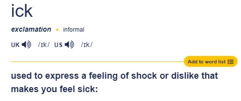 >self-ick>unironically saying ickcringe/ick/pass