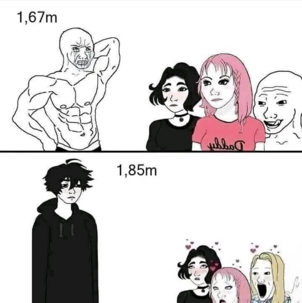 >>82988759youre only on girls radar if youre 6 0+ with a model face. even if youre 6 5 and ugly asf, you still wont pull. appearance matters more than height.