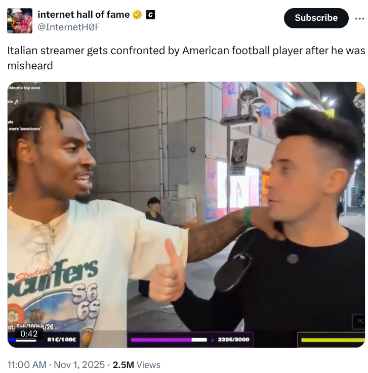 also it's like in japan it's so bizzare how far and rare this level of black toxicity is, he's talking to an itallian in japan and all he heard was the n word