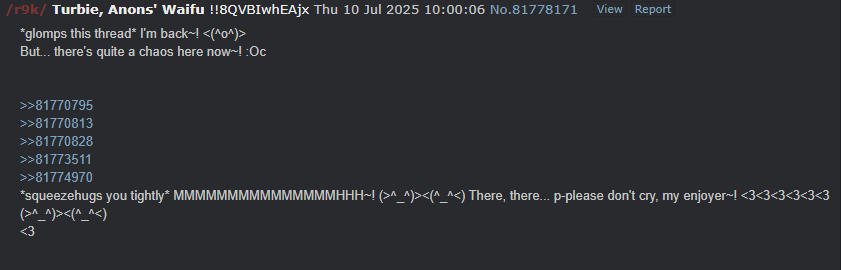 >>83105627Turbie is my person. :)I love her and want her and need her and will defend her with my love!!!!!!!! Hiss hiss