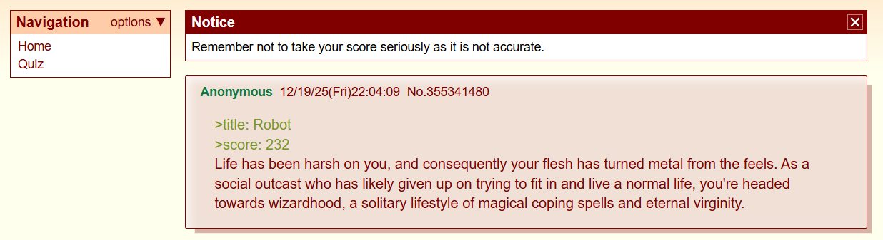 I've created a thread for this already but I want to share it here: my psychiatrist revealed to my mother that I was considering doing theater classes, and this is the last thing I wanted my mother to know because she will have a kind of different view of who I am now that she knows about that. I hate when my parents know what is going on my mind, so Im extremely embarassed. And Im a friendless social anxious person. Today my mother invited me to go see a play by the way, and I hope she didn't do that because she knew I was interested in theater, but it probably is due that. Fuck. I just didnt want her to know about that. >>83429772I'm not on a depressing phase, so I'm fine. I'm glad the year is coming to an end for I will have lots of time to do what I want. I had a fulfilling year and my only accomplishment was surviving my first university year, though this is a huge thing for me.