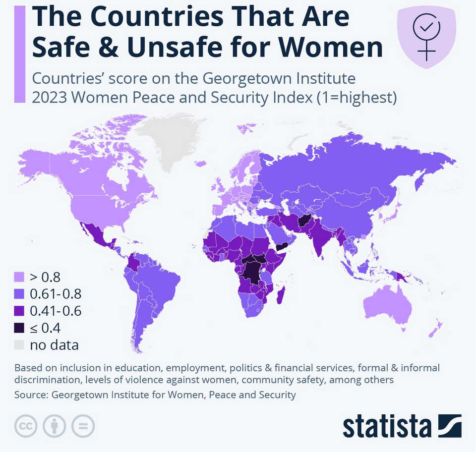 >>83462128all the countries that show up as a worse color than India on that map are war zones (or were in 2023) Either it's war rape or the map is counting the general hazards of living there as unsafe (which isn't *wrong* but it's not safe for men either)