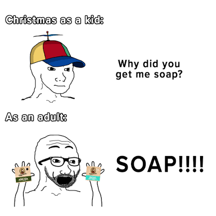 >>83475191That image is so real, I hated clothes and soap and usable shit as a kid, but now I love getting that sort of stuff.