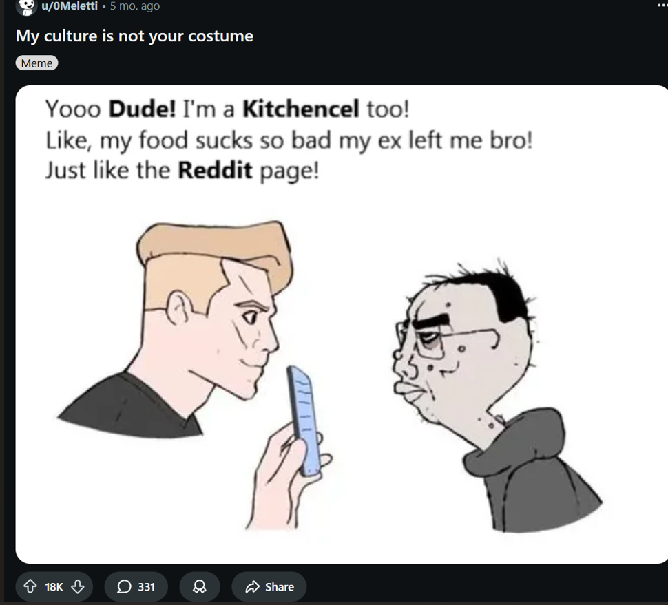 >>83501347r/kitchencels is so fucking unfunnyxitter/redditfags laughing at their own jokes