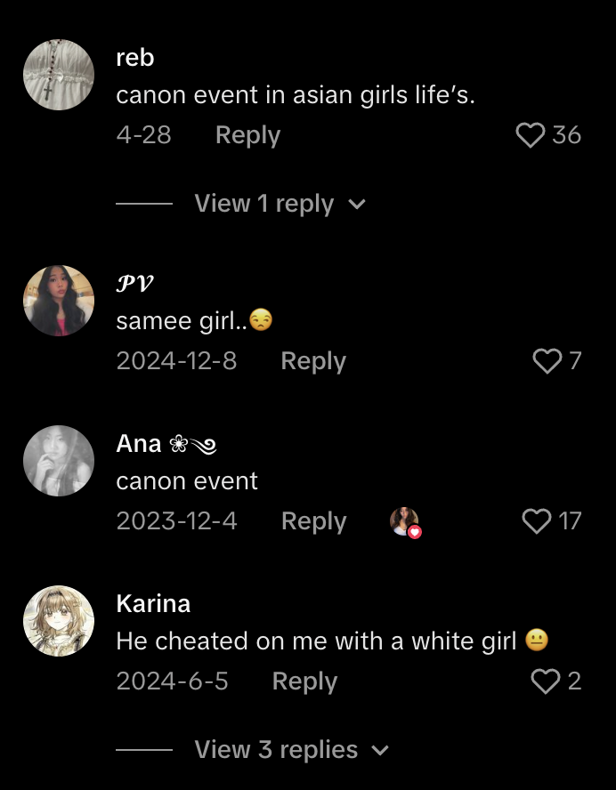 >>83501593asian women seethe about white women all the time what are u talking about lol