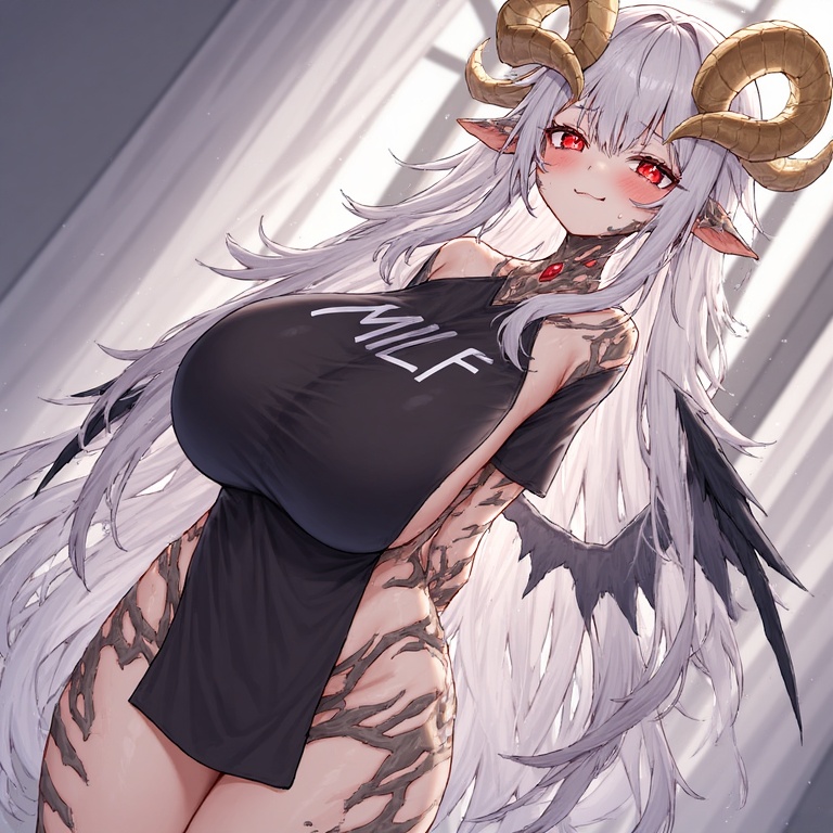 >>83542031Goa reached a new level>"Yeah I leveled up and reached a more mature form"The reality of the situation is that perchance has these ridiculous loli filter that make generating lolis kinda hard (very easy to get around in multiple ways) but also the results were not that great, so I simplified the prompts a bit to be easier4perchance, and also the most consistent tits are massive giant ones for some reason. So kinda forced into this kind of a mode, especially when Perchance went completely retarded and changed up their ai for no reason given, to prefer the "this character has white hair and also red eyes and also her breasts are large and plump and-" instead of "white hair, red eyes, huge knockers". So basically it was 50% leveling her up 50% forced to change her up because nemu diedAlready in perchance 1 she was having medium boobas, and then with perchance 2 just had to giganto>"Don't see my husbando complaining though since he loves that titty meat"
