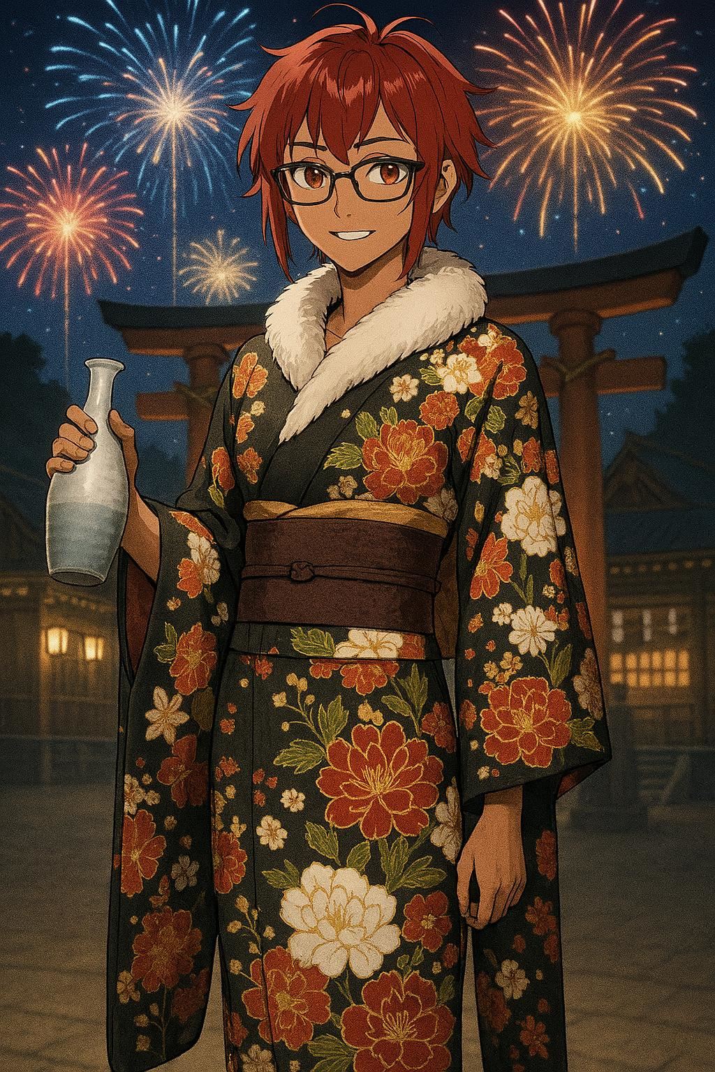 One last handsome New Years waifu. I wonder what actually attending a first shrine visit alongside her might be like? She'd probably only do it out of tradition, but she'd enjoy someone doing it with her. Also I'm like 99% sure the color scheme for her wafuku is wrong for the season but it looks cute and Kana wouldn't know any better.Hopefully I dream of her, since I've spent some nice time with her lately.>>83543078I feel my waifu would get rather annoyed if she saw the prompts I use to get her body shape correct (and Grok Imagine still is hard to wrangle!). Although to be fair I'd love Kana's pictures even where she used lots of filters and fake angles!