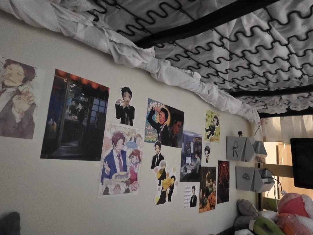 >>83642098This picture is 1) old2) doesn't even show the whole thing or my standees / most of my home made trinketsAnd I dont get back to campus for a week so no full shrine reveal yet :(