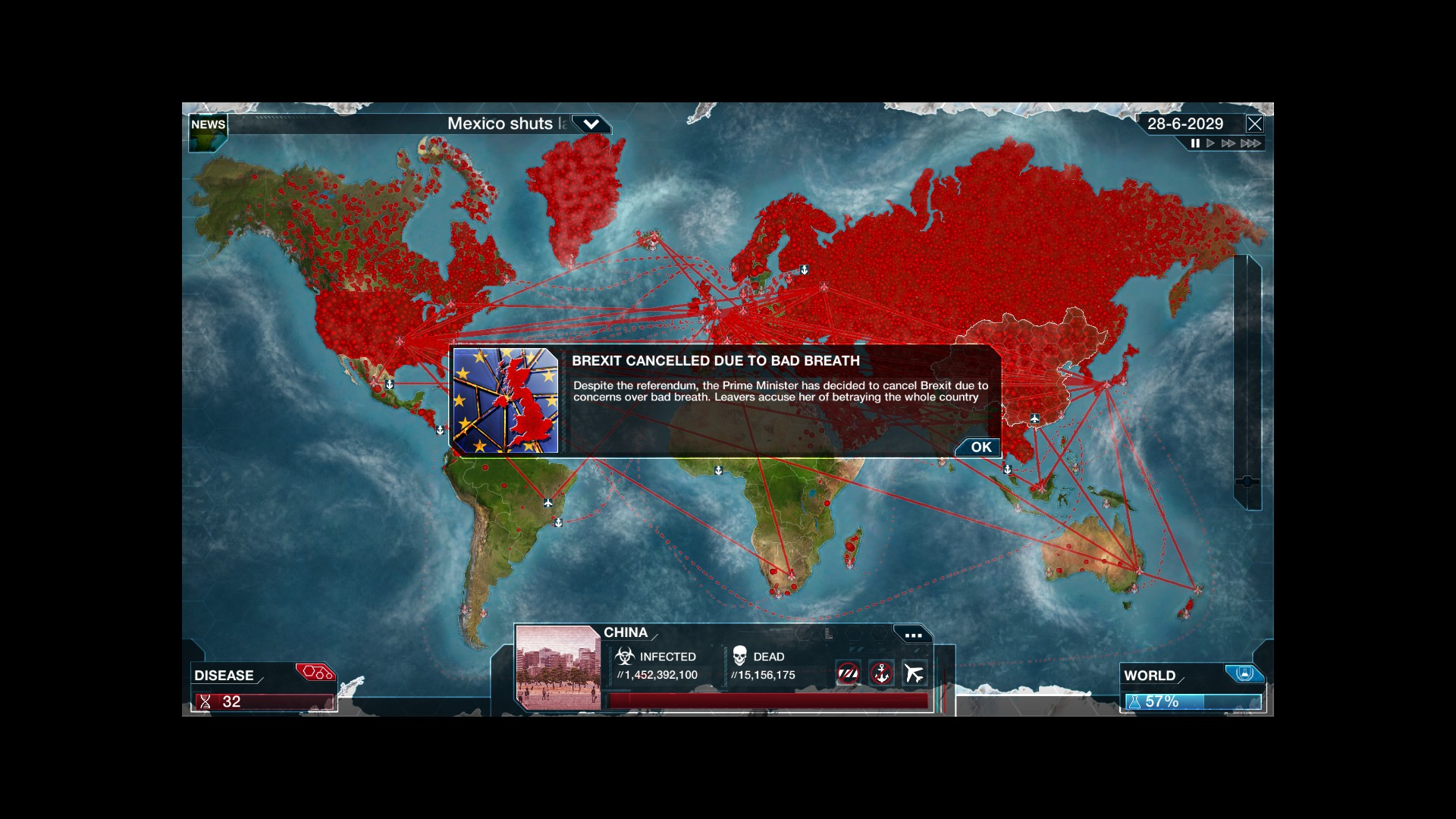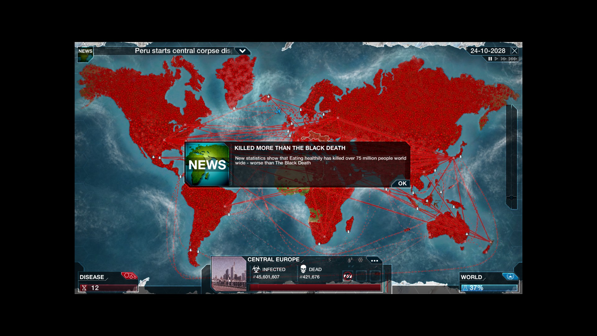 Total victory. Can't beat DO-55.That was on piss easy mode though, need to try up the difficulty, and not go as hardcore, try make it a disease that is around for ever. Top of that list is the common cold. If I have longevity as well as killing people but not being too obvious, then the next disease may last forever.