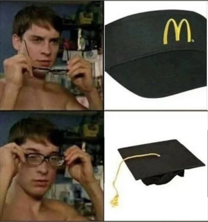 >>83683096This image is false because Micky Ds will say you're overqualified.