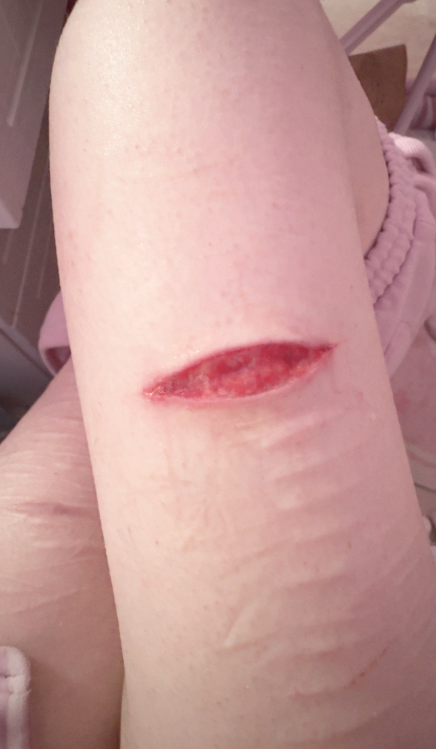why does it hurt so much the day after and not when im actually cutting oh my god so much pain ow ow ow my leg. my skin feels raw jesus christ. i know its self harm but what the hell