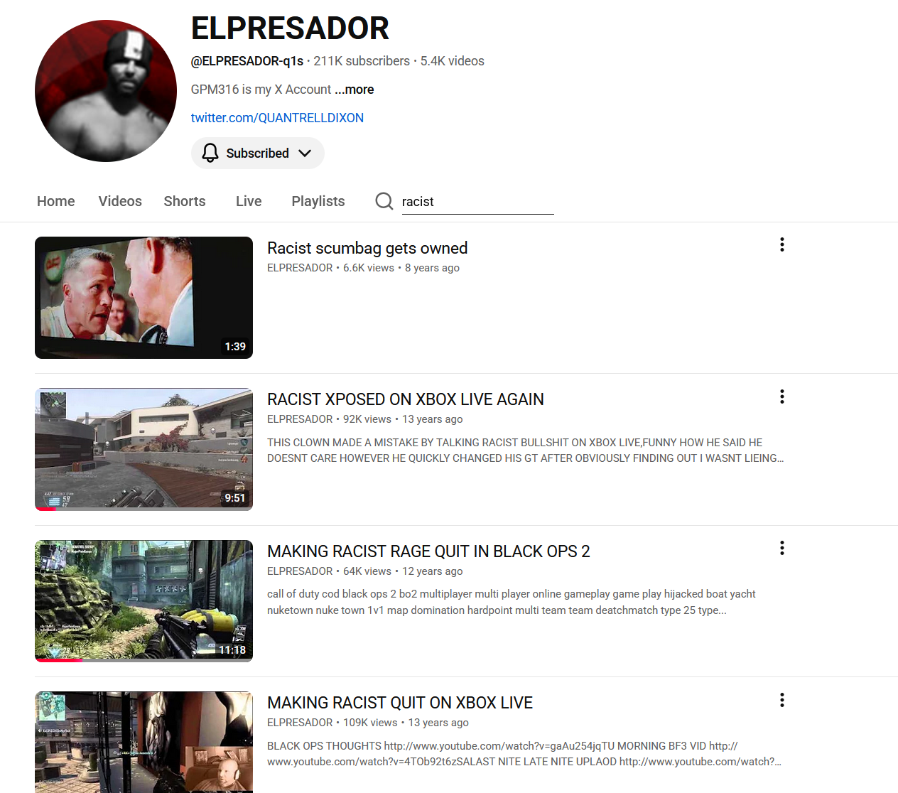>Calls you a nigger on a COD lobby in 2012