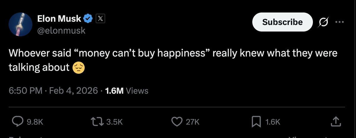 >>83841471continues to not dump all his money and rockets in the ocean and fire all his employees