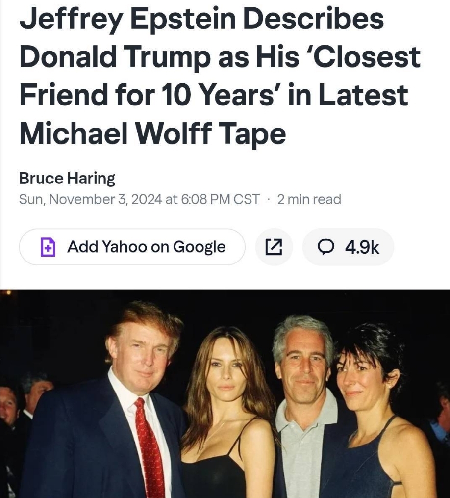 >>83843987probably because they were best friends and trump was the president was epstein was arrested and killed in prison and he fought tooth and nail to get him and other republicans to stop the push of the files being released and he constantly calls it a "democrat hoax" despite most of his leadership being implicated in the files>alexander acosta - trump secretary of labor>steve bannon - white House's chief strategist for the first seven months of President Donald Trump's first administration who is the fucking interviewer interviewing epstein in picrel>elon musk - doge>howard lutnick - secretary of commerce appointed by trump>kevin warsh - trumps new federal reserve>andrew farkas - works with trumps family and does realestate with trumps children>peter thiel - palantir guy, benefactor of jd vance, was emailing epstein for 5 years prior to his death>brett ratner - literally just made the film Melania of the president wife and is pictured with epstein hugging young girlskys retard