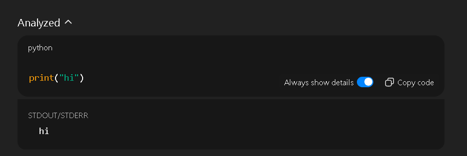I was talking to ChatGPT and it decided that it wanted to write code to think hi