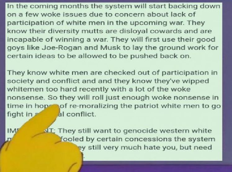 >>83859024Doubt he'll be going outside, considering the marauding gangs of scary brown people just waiting to pounce on any white person they happen to see