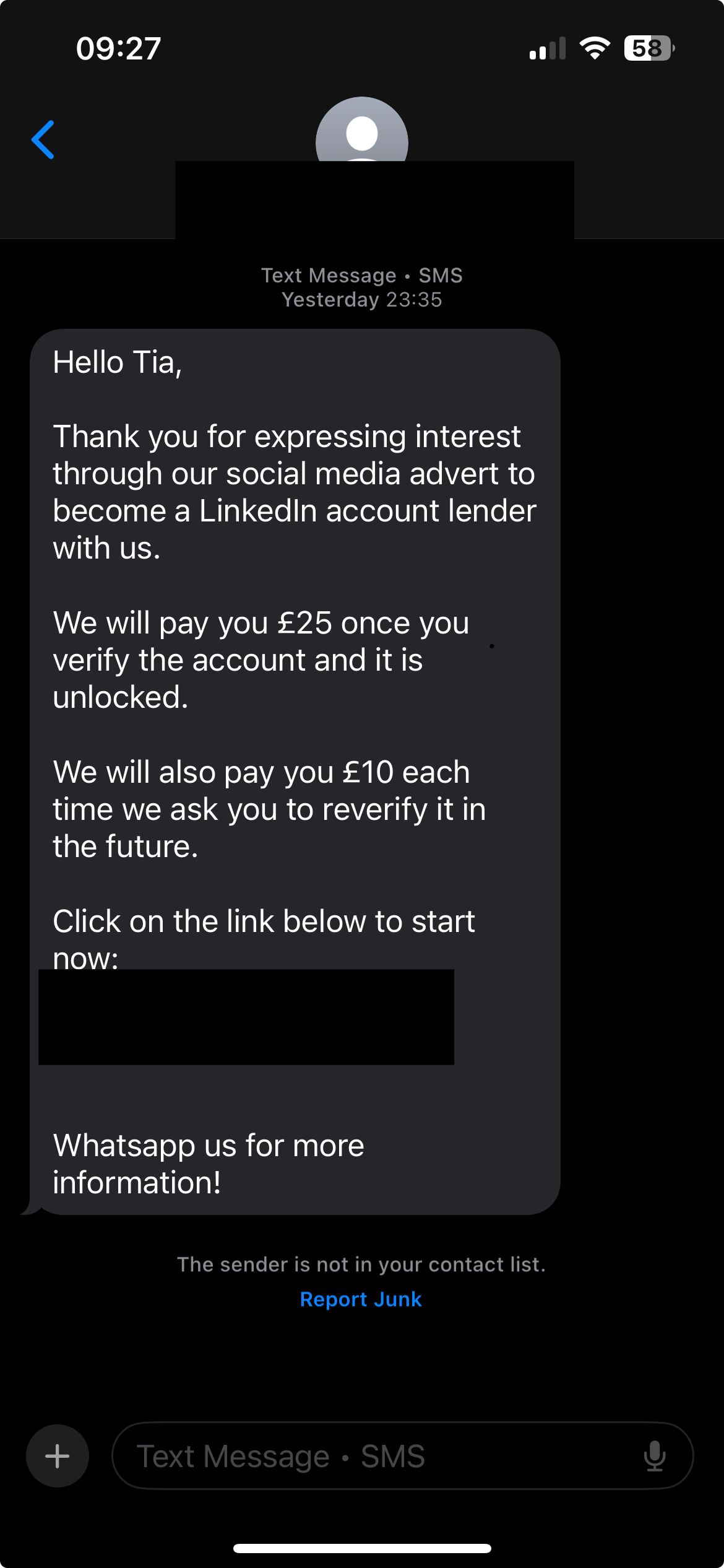 Tia strikes again lads. Now she's wanting to sell her LinkedIn account for 25 bong. How does she keep getting her own number mixed up with mine?