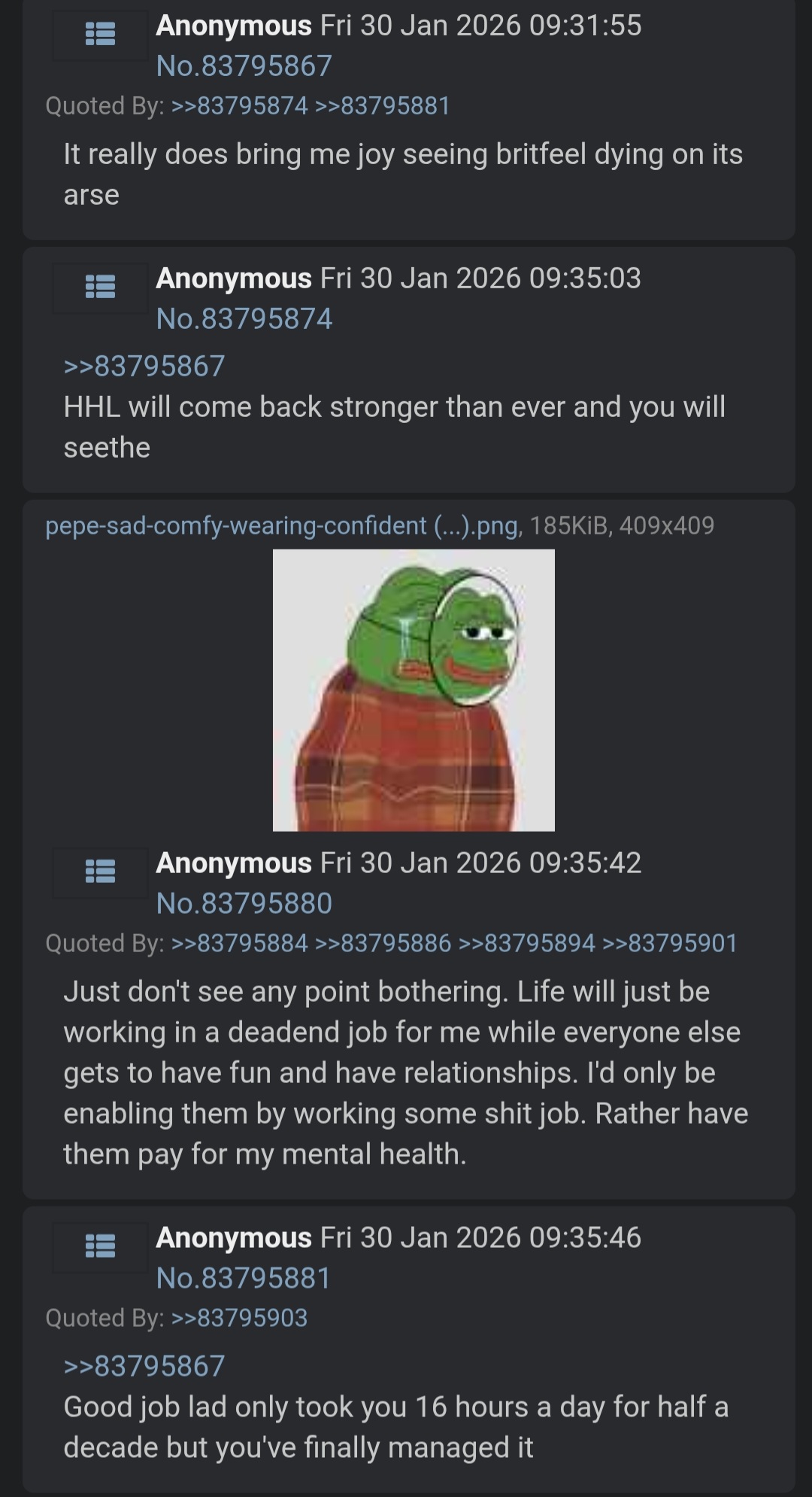 >>83879186Never. /brit/ is too fast and even more spammy than here.