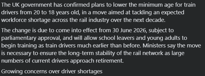Yeah... I am not sure I want to go on a train driven by an 18y/o fresh off the boat thank you very much.