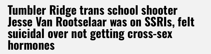 >trans shooter>look inside>likely not on hrt/only started last year>parents made him take ssris/antipsychotics, took mushrooms toothese trannies are so violent, 1 million more ssri prescriptions to young men please!