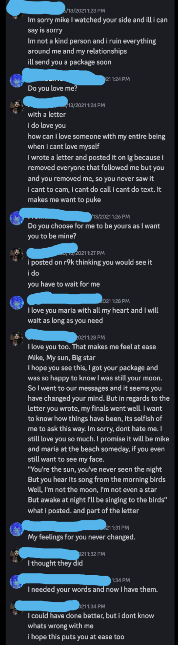 Equal balanced communication is going to be so fucking nice. No more of this bullshit. Restoration to normal. Continuing together. That day forward.
