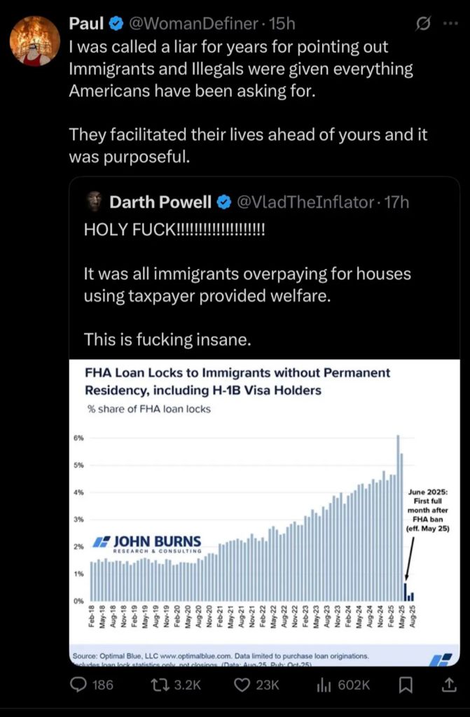 >>83936614Look at the Y axis on that chart. It's showing that at its peak immigrants only made up 6% of FHA loan locks.So not even 6% for how many actually went on to receive FHA loans.Plus FHA loans only account for 12% of home sales to begin with.Even for those 12% of FHA loan involved home sales you had the vast majority consistently going to permanent residents.